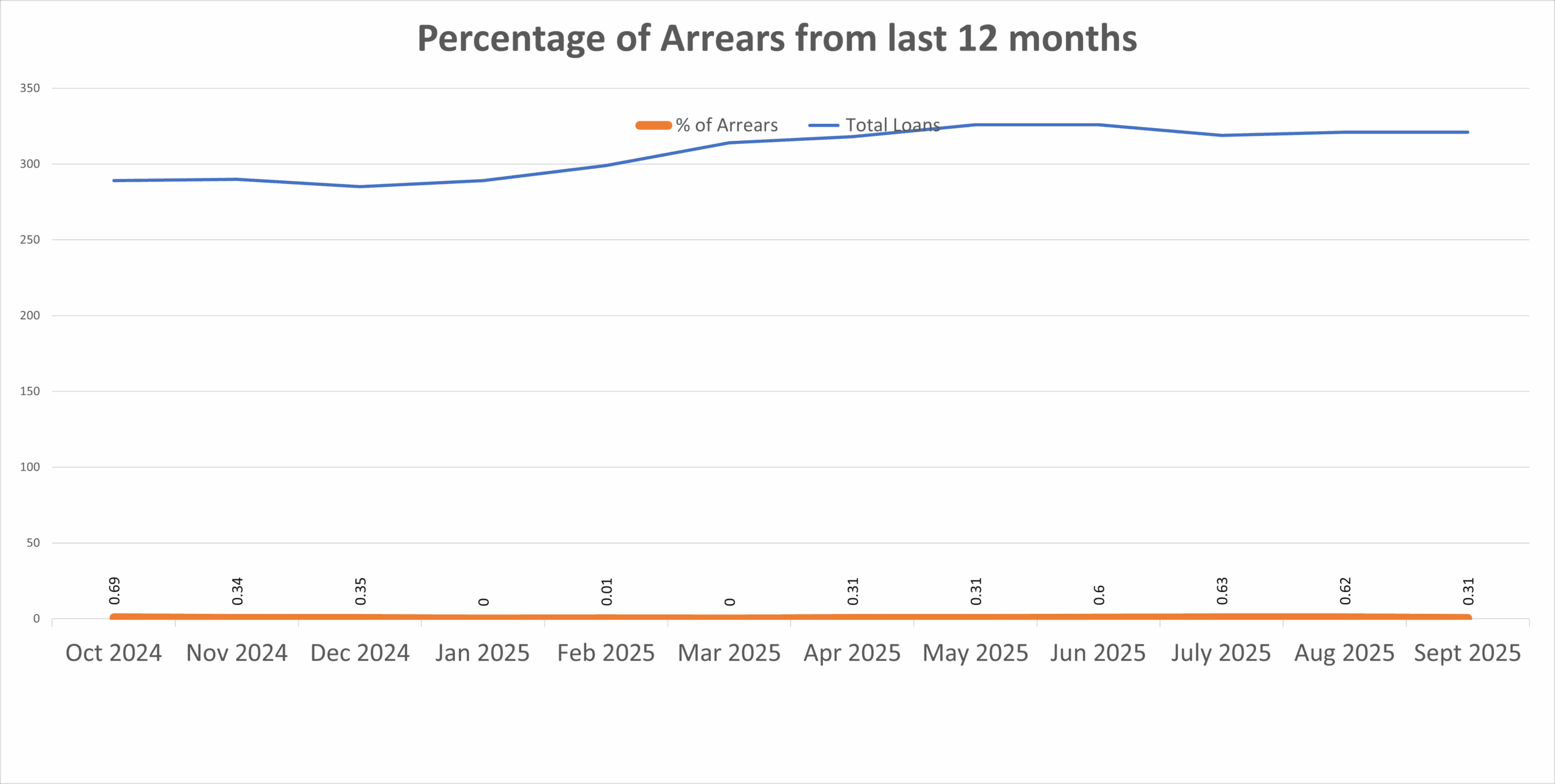 Arrears - 1 out of 321 Loans, representing 0.31% of the total number of loans