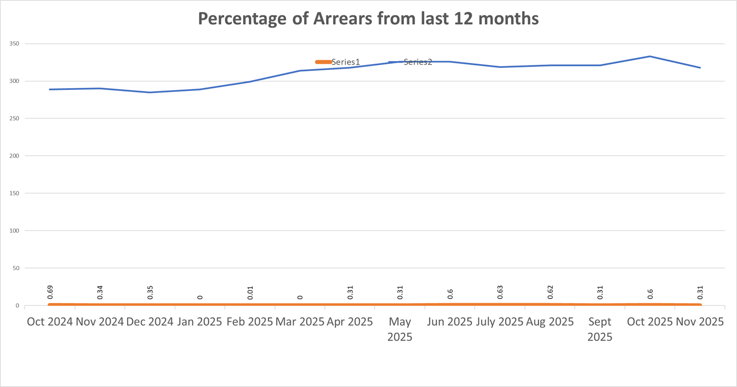 Arrears - 1 out of 318 Loans, representing 0.31% of the total number of loans