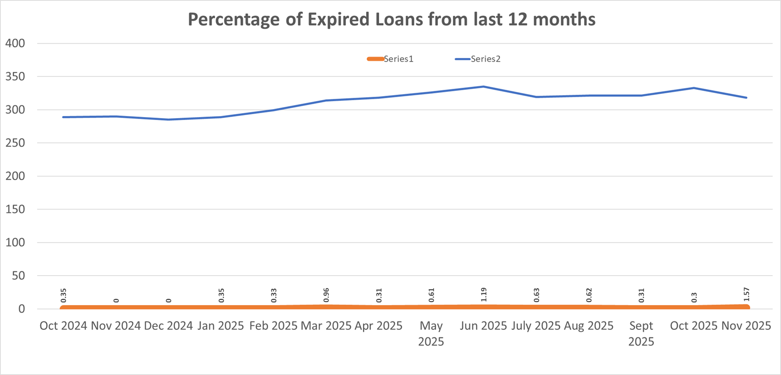 Expired - 5 out of 318 Loans, representing 1.57% of the total number of loans.